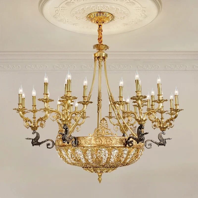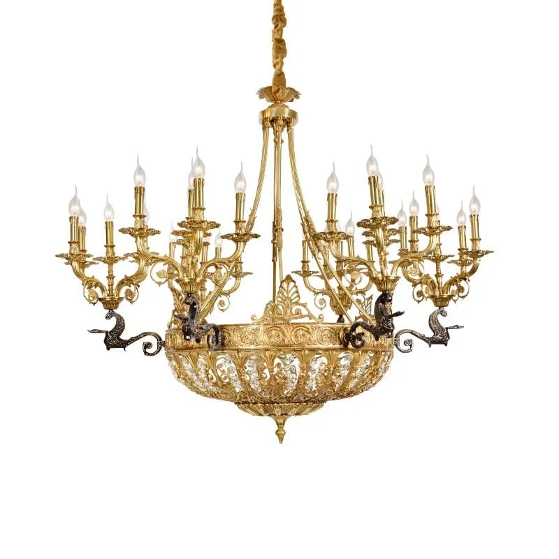 Originating from the opulent designs of French royalty, these Brass Large ChandelierS embody sophistication and artistic flair.