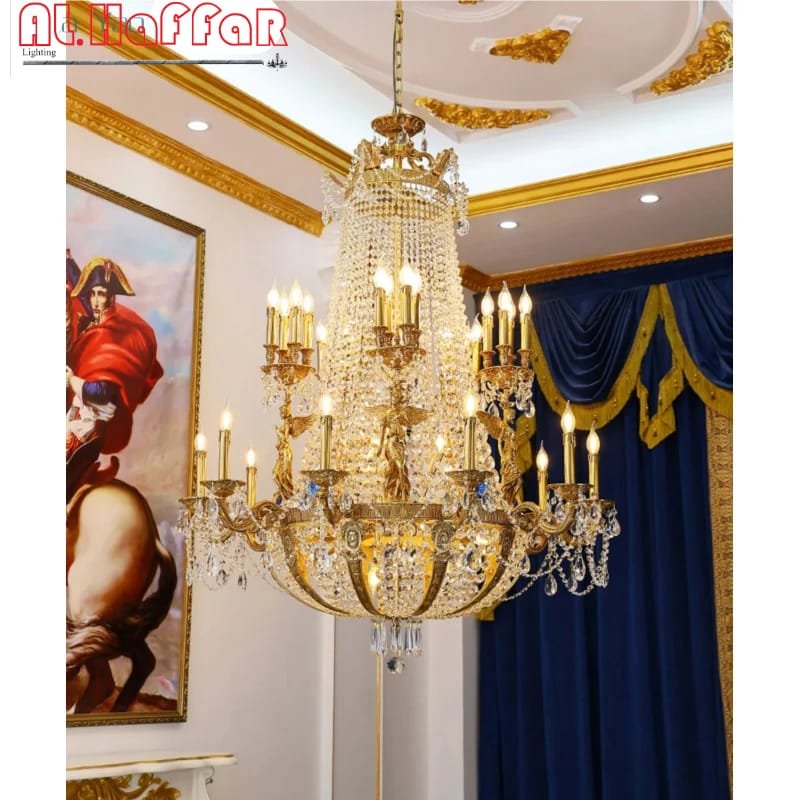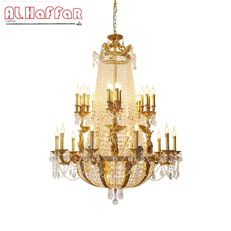 Baroque Palace Gocci Luxury Brass Pendant Light Victorian Large Dome Crystal Bead Chandelier
