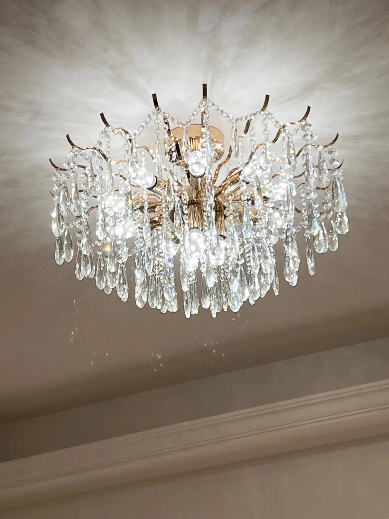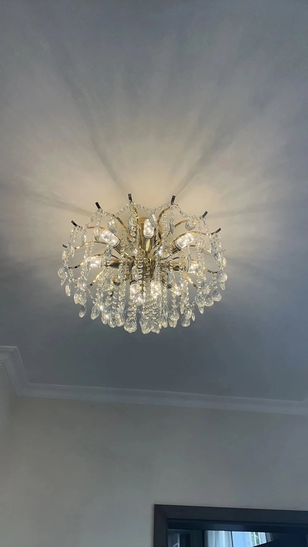 This crystal chandelier is truly the finishing touch to our home. As night falls, the light filters through the crystal, casting a dazzling glow that fills entire room with a luxurious and romantic ambiance. Very satisfied.