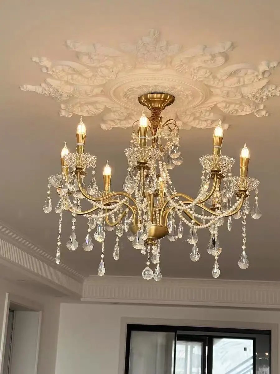 American Luxury Candle Chandelier Foyer Lustre K9 Crystal Pendant Lights French Candle Droplight Home Decor Led Lamparas Lamp