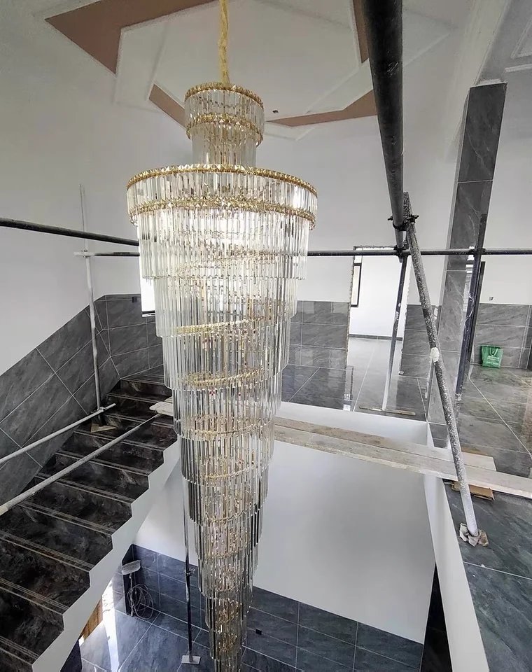 The allure of Long Staircase Chandelier Crystal For Villa Living Room Large particularly shines in their placement along long staircases,
