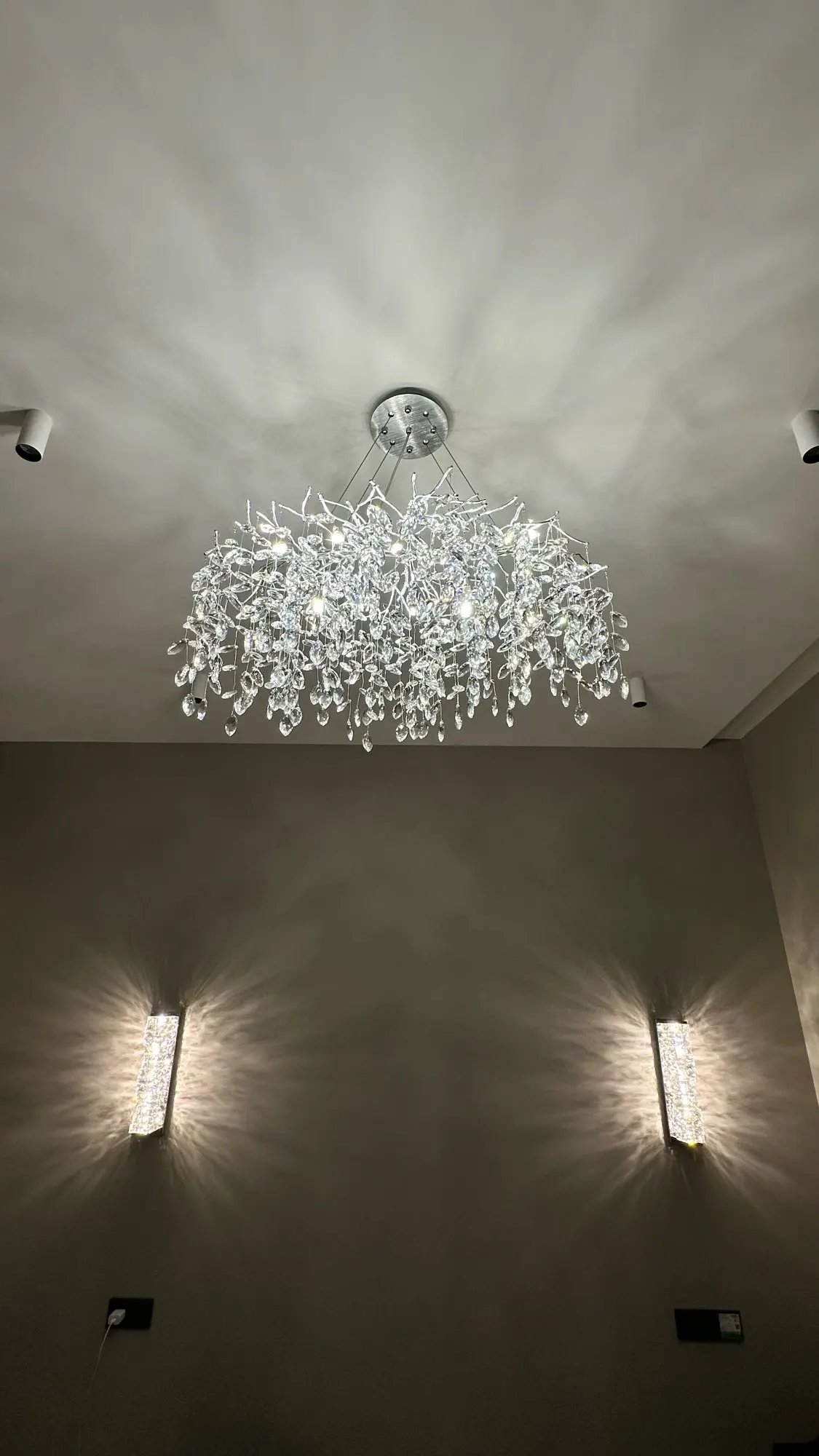Consider hanging your modern tree branch crystal chandelier above a dining table or in a spacious living area where its brilliance can be fully appreciated.