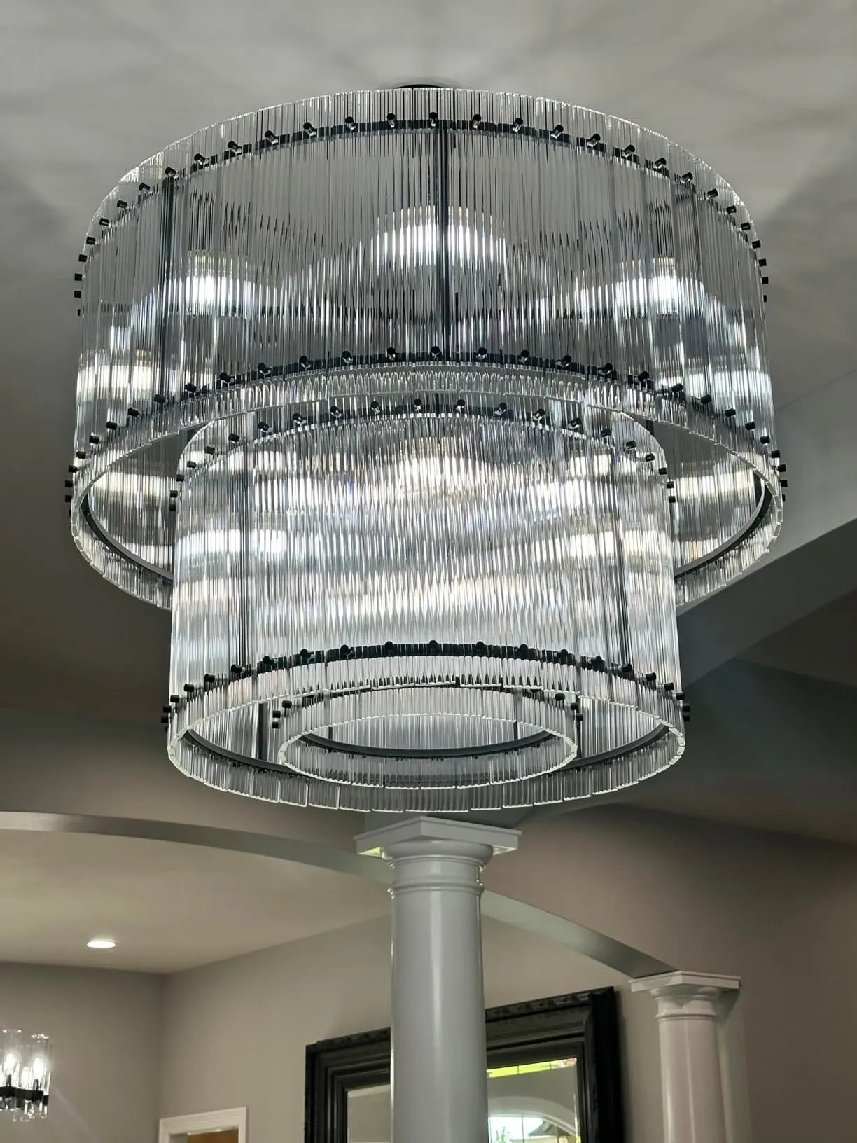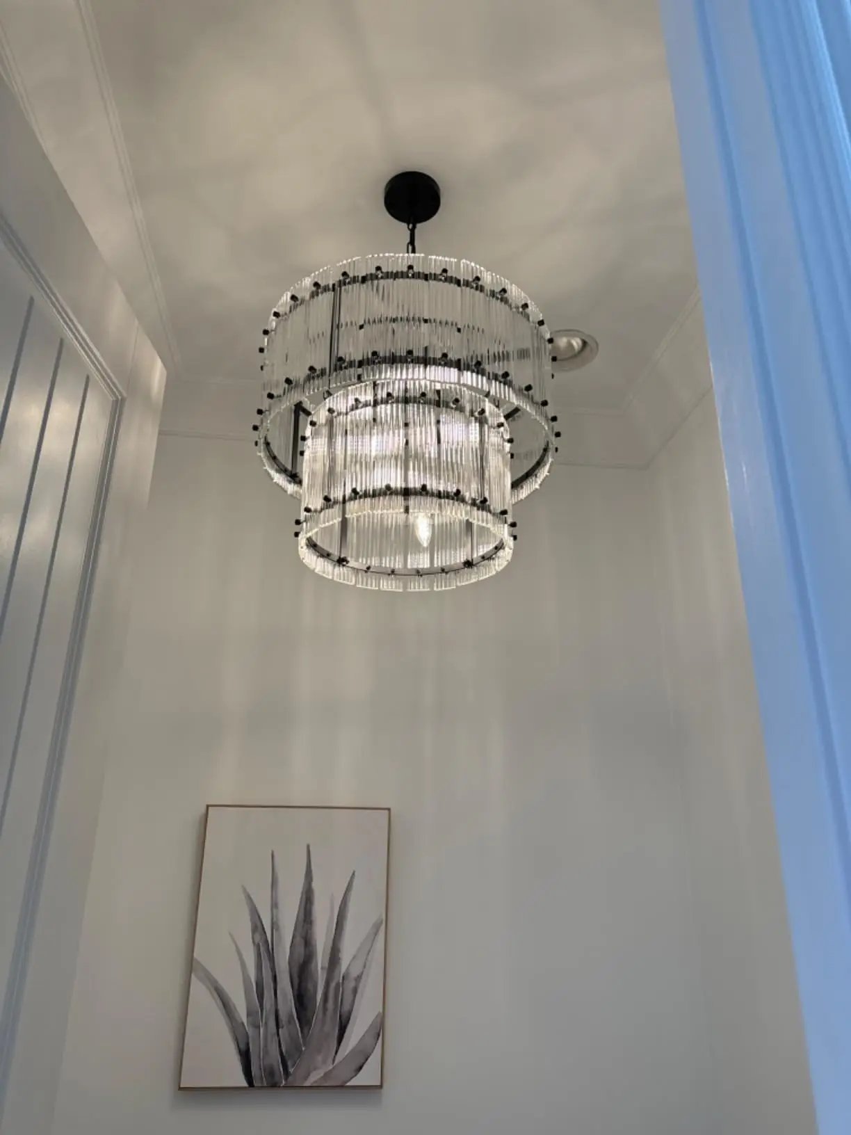 Geourgous chandelier!! I have been looking for a chandelier for quite a while and I finally decided to go with this one and I I am do glad that I did this chandelier is absolutely beautiful and the pictures don’t do any justice as it looks wY better in person.