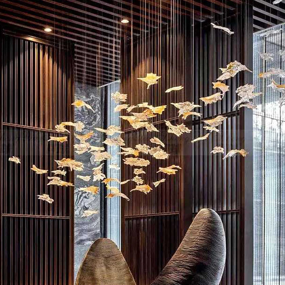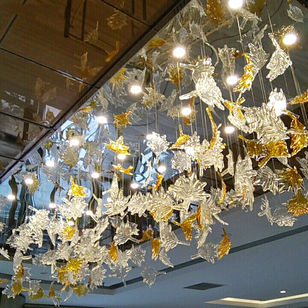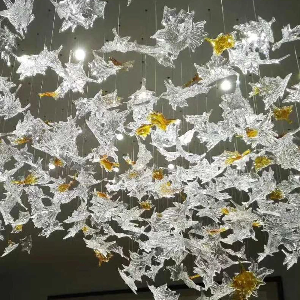 Art Designer Chandelier Large Hotel Lobby Maple Leaves Decoration For Villa Led Hanglamp Luxury Project Lighting