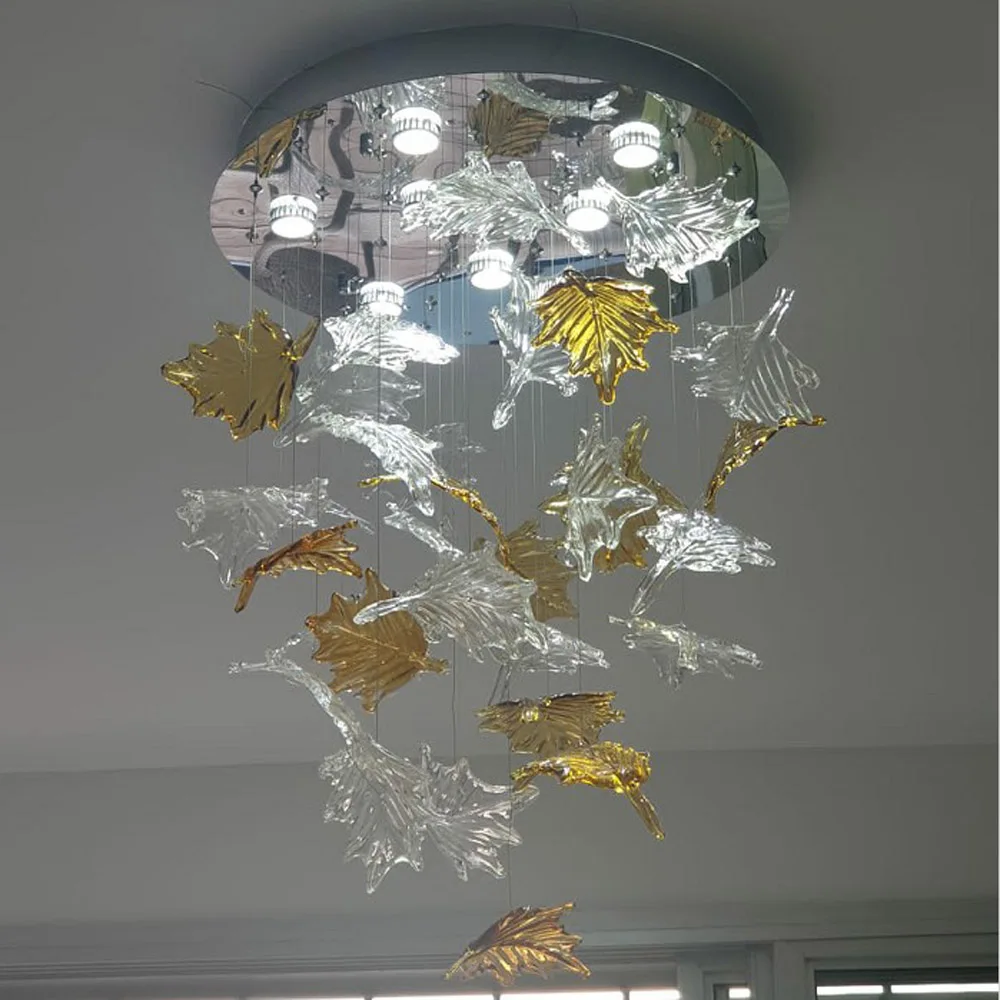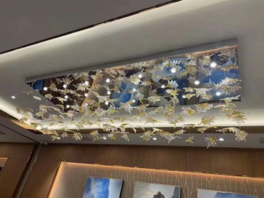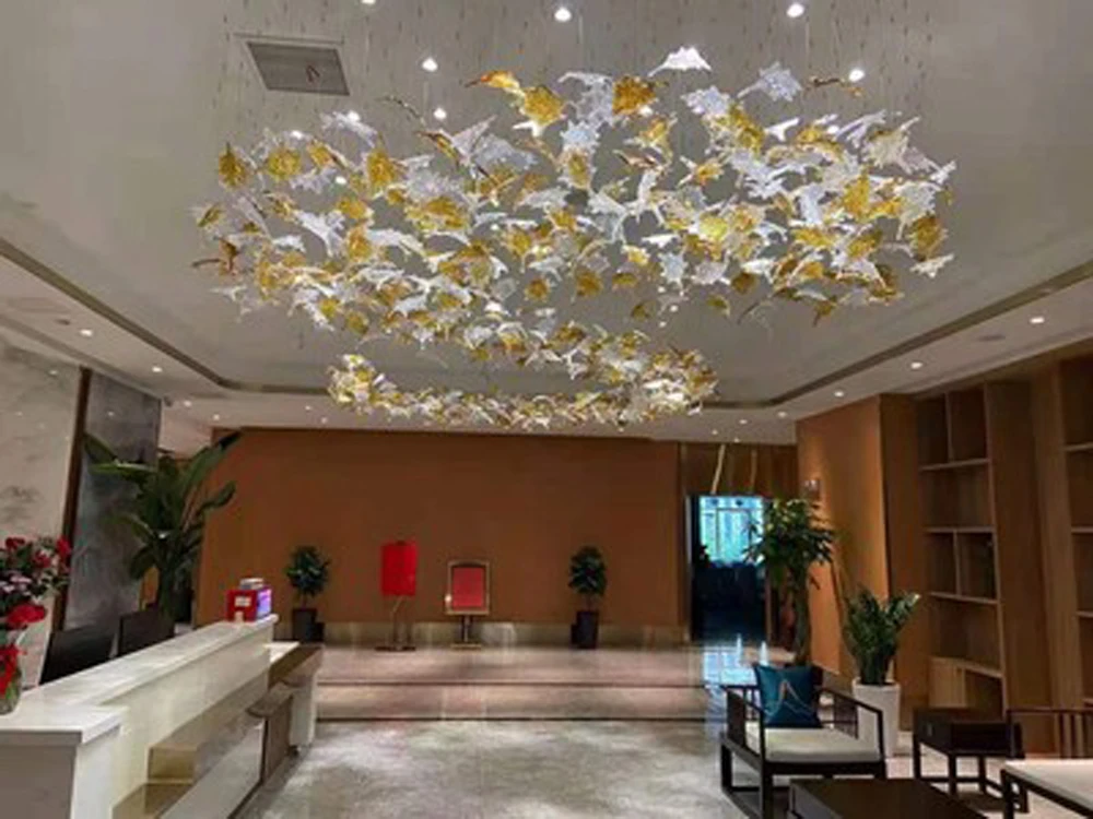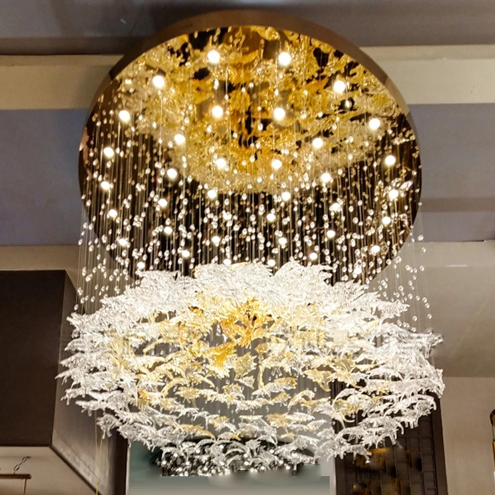 Art Designer Chandelier Large Hotel Lobby Maple Leaves Decoration For Villa Led Hanglamp Luxury Project Lighting