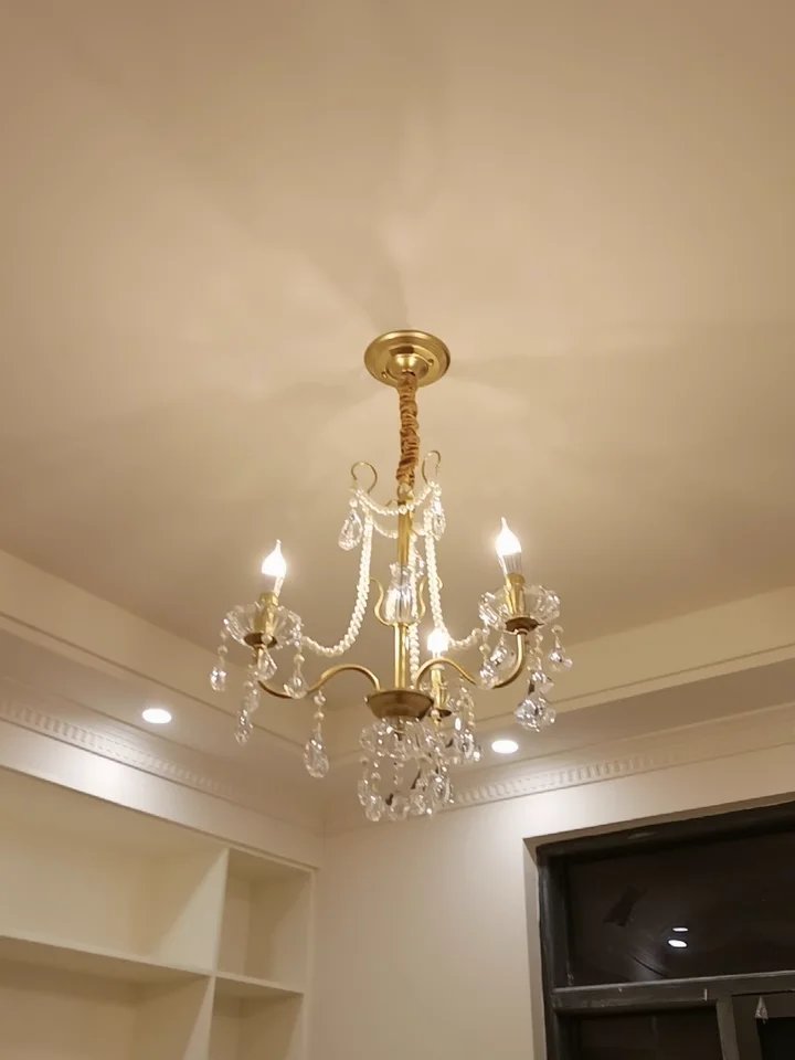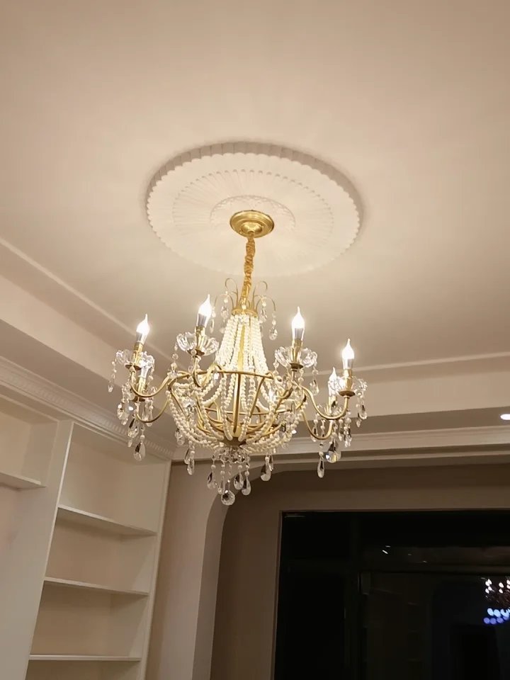 American Crystal Lamp French Retro Style Pearl Chandelier Middle Villa for Living Room Dining Room Bedroom Duplex Chandelier