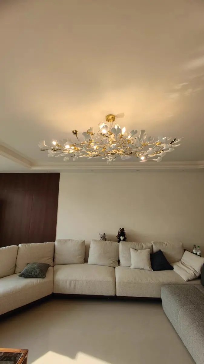 Nordic Luxury Ceramic Ginkgo Leaf Chandelier Home Decor Hanging Light Fixture Living Dining Room Bar Bedroom Led Pendant Lamp