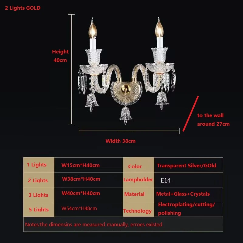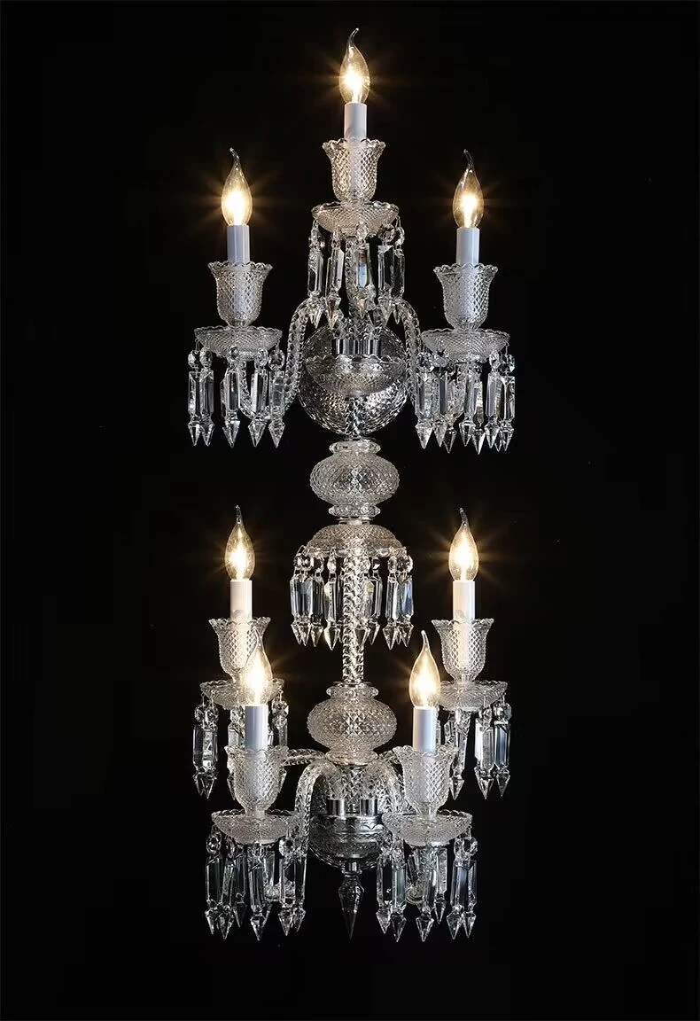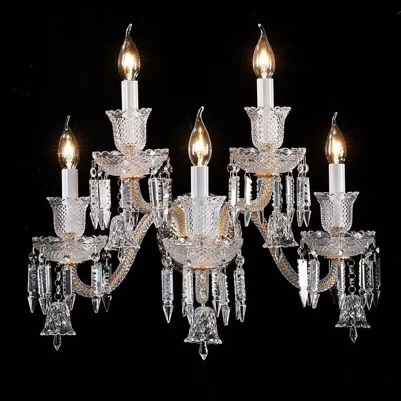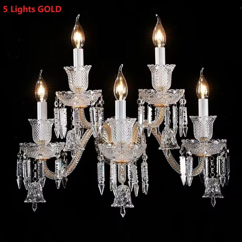 K9 Traditional Crystal Wall Lamp Bedside Aisle Ktv LED Lights 1/2/3/5/7 Lights Head Gold/Silver French Candle